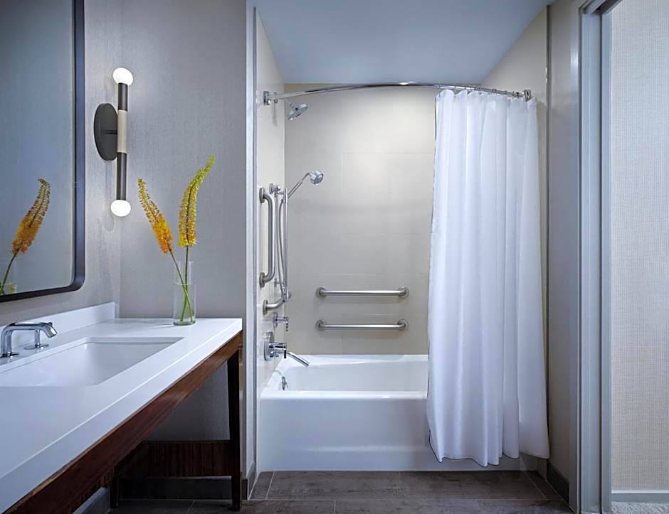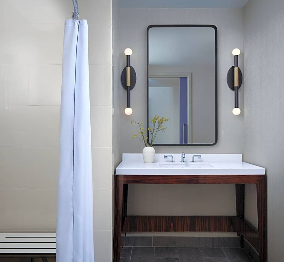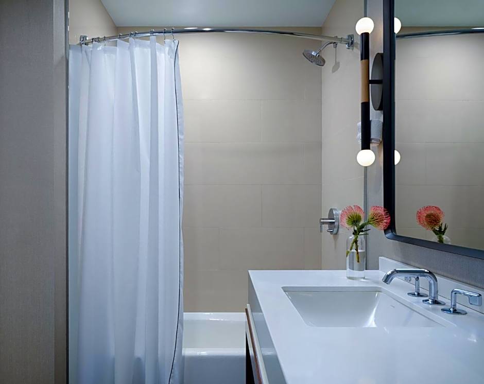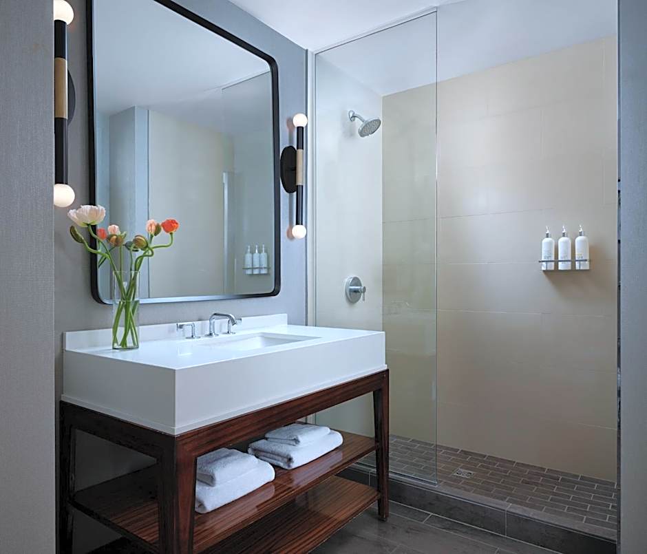 Features an accessible tub. Italian Frette linens, animal print bathrobes, designer bath toiletries, a flat-panel cable TV, desk, iHome docking station, and organic honor bar are also provided.